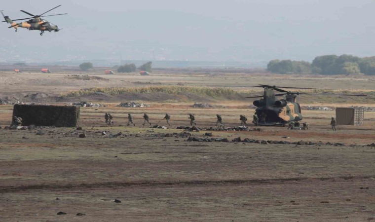 Kıbrıs Barış Harekatı’nda yer alan, terörle mücadele operasyonlarında da görev alan ve komando tugayları arasında hava indirme harekatı yeteneğine sahip olan Kayseri 1. Komando Tugay Komutanlığı tarafından düzenlenen Erciyes-2023 Tatbikatı hav indirme operasyonuyla sona erdi. İncesu ilçesi sınırlarında bulunan Şehit Teğmen Hasan Bak Atma ve Atlama Sahası’nda icra edilen tatbikatta 12. Hava Ulaştırma Ana Üs Komutanlığından havalanan C-130 ve C-160 nakliye uçaklarındaki atlayan paraşütçü komandolar, bölgeye inerek temsili olarak düşman muharebe merkezine operasyon düzenledi. Tatbikatta komandolar tarafından teröristlerden arındırılan bölge Silahlı İnsansız Hava Aracı (SİHA) ile vurulurken, helikopterle düşman bölgesine indirilen toplarla da tepelerdeki hedefler imha edildi. Bölgeyi komandoların kontrol altına almasına ardından AFAD ve Kızılay görevlileri, yardım için helikopterle alana getirildi. Gürcistan, İspanya, Azerbeycan, Pakistan, İtalya, Libya ve Özbekistan’ın katılım sağladığı tatbikatta, Bahreyn ve Birleşik Krallık’ta gözlemci bulundurdu. Göz dolduran tatbikat tatbikata katılan 10 ülkenin bayrağıyla yapılan saygı atlayışı ile sona erdi. Chinook tipi iki helikopterin de kullanıldığı tatbikata, 652 personel, 67 araç, 354 değişik çapta silah, 5 nakliye uçağı, 2 taarruz helikopteri, 6 genel maksat helikopteri ve 2 yük helikopteri ve 17 hava aracı katıldı.