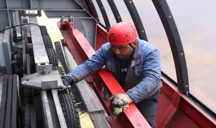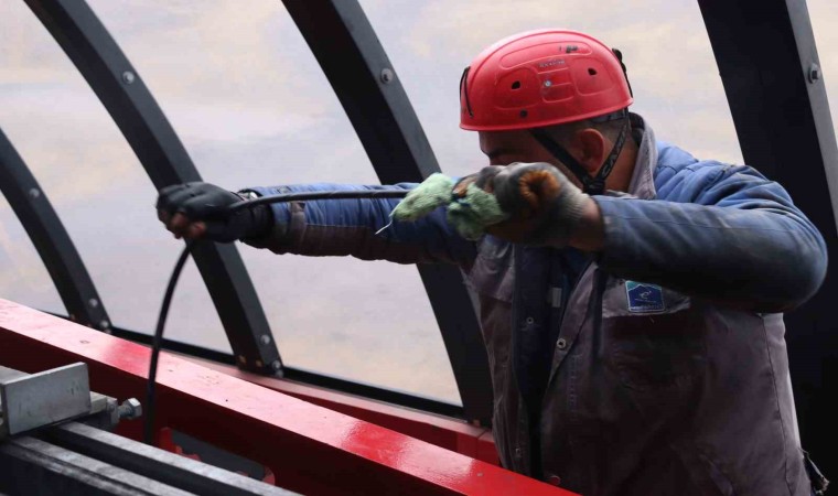 Her yıl yüz binlerce yerli ve yabancı turistin ziyaret ettiği Erciyes Dağı’nda ekipler, sezon öncesinde 24 kilometre uzunluğundaki halatları santim santim kontrol ederek yeni sezona hazırlıyor.