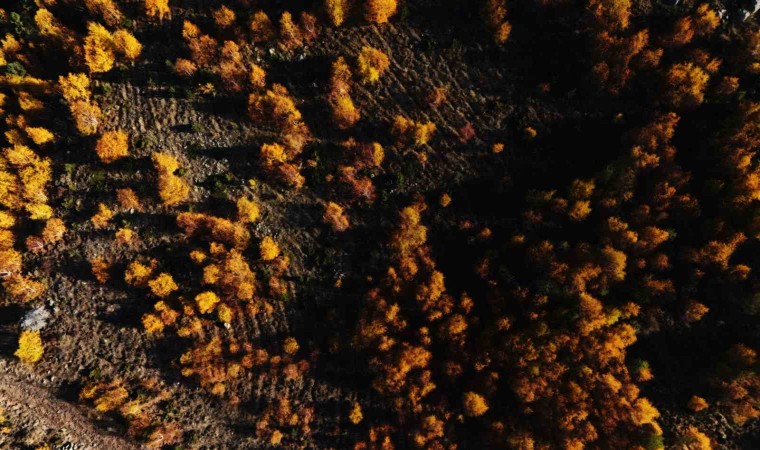 Erciyes Dağı’nın eteklerinde sonbaharla beraber sararan ağaçlar görsel şölen oluşturdu.