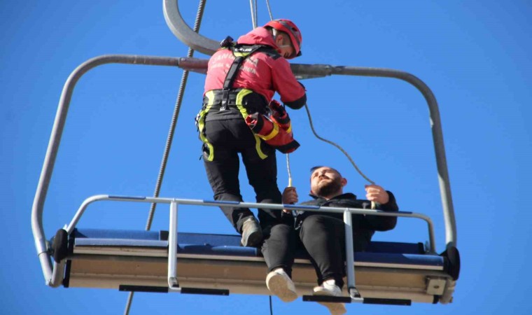 Türkiye’nin önemli turizm merkezlerinden olan Erciyes Kayak Merkezi’nde senaryo gereği teleferikte mahsur kalan turistleri kurtarma tatbikatı gerçekleştirildi.