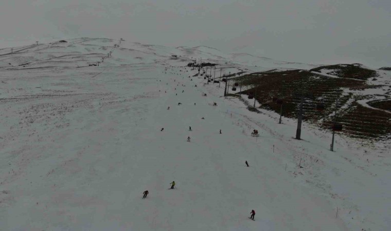 Türkiye’de kış turizminin önemli merkezlerinden olan Erciyes Kayak Merkezi’nde kayakçılar pistleri dolduruyor.