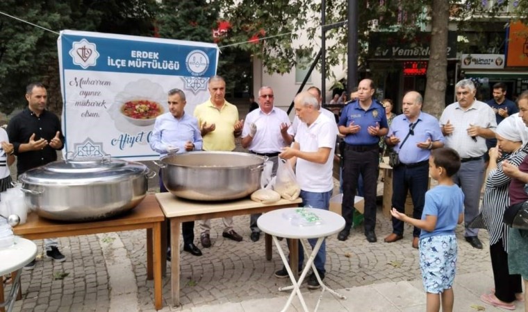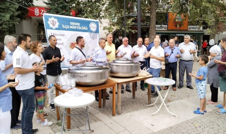 Erdek İlçe Müftülüğü ve TDV tarafından, Erdekli iş adamları katkıları ile Erdek Cumhuriyet Meydanında kazanlarla aşure ikramı yapıldı. Erdek İlçe Kaymakamı Abdullah Atakan Atasoy, Erdek İlçe Müftüsü Doğan Eygün, kurum amirleri ve vatandaşların katıldığı program Erdek İlçe Müftüsü Doğan Eygün’ün duası ile başladı. Daha sonra kazanın başına geçen Erdek Kaymakamı Atasoy, vatandaşlara Aşure dağıttı. Aşure yaklaşık 3000 kişiye ikram edildi.