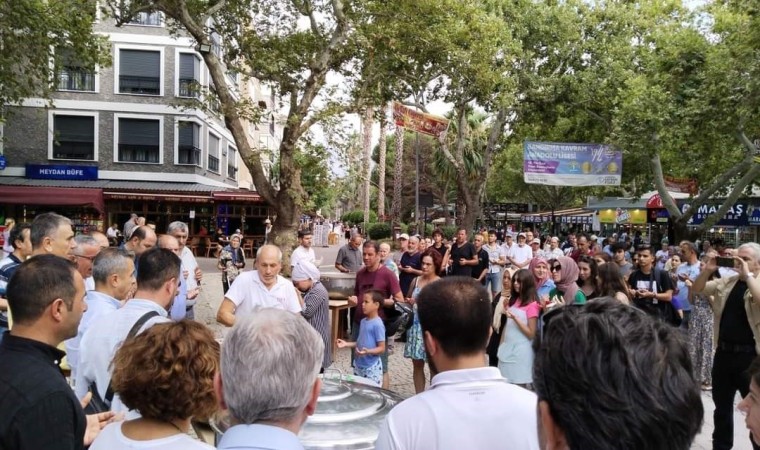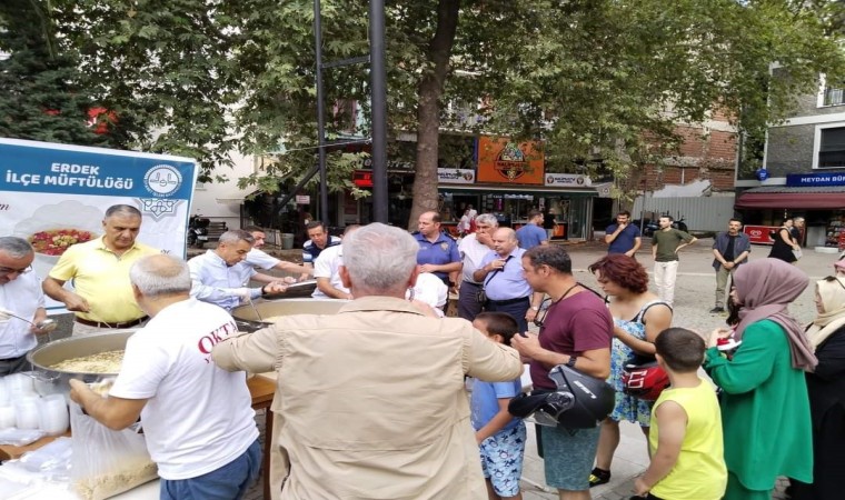 Balıkesir’in Erdek ilçesinde Muharrem ayı münasebetiyle vatandaşlara aşure ikram edildi.