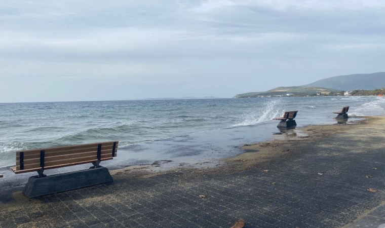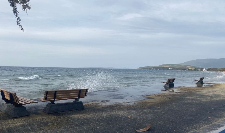 Balıkesir’in Erdek ilçesinde sahilde lodos nedeniyle yüksek dalgalar oluşurken, deniz kara ile adeta birleşti.