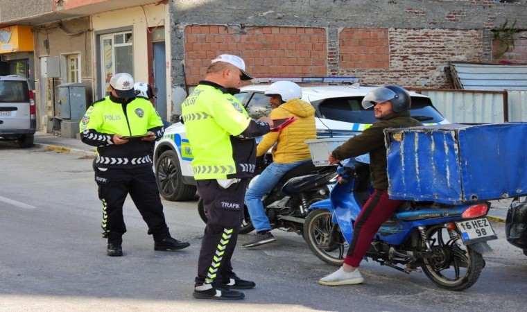 Balıkesir’in Erdek ilçesinde motosiklet, motorlu bisiklet ve elektrikli bisiklet sürücülerinin kask ve gözlük kullanımı, yolcuların ise kask bulundurması ve kullanması kontrol edildi.