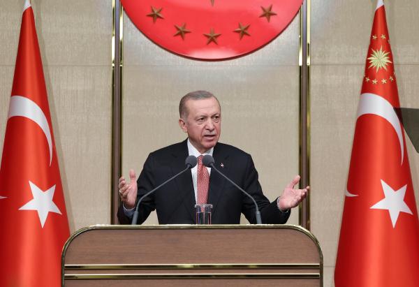 Cumhurbaşkanı Erdoğan, gelişmiş ülkeler başta olmak üzere büyük ekonomilerin dahi altından kalkmakta zorlandığı dalgalanmaları Türkiye'nin avantaja çevirebildiğine işaret ederek, "Salgında bunu yaptık. Bölgemizde patlak veren kriz ve çatışmalarda bunu yaptık. Ekonomimize kurulan tuzakları kendi modelimizle aşarken yine bunu yaptık. Depremin yıkımının altında da Allah'ın izniyle bu şekilde kalkacağız. Geçtiğimiz 20 yılda kurduğumuz güçlü demokrasi ve kalkınma alt yapısının verdiği imkanları kullanarak kayıplarımızı hızla telafi edebileceğimiz bir dinamizm yakaladık. Hiçbir engelin bu yükselişin önüne geçmesine, bizi geriye savurmasına izin vermeyeceğiz. Önümüzdeki dönemde ülkemizi, dünyanın en büyük 10 ekonomisi arasına çıkarma hedefimize Allah'ın izniyle daha emin adımlarla ilerleyeceğiz. Bu süreçte elde ettiğimiz tecrübeler önümüzdeki dönemde sistemi daha ileriye taşımak, daha etkin çalışır hale getirmek için yapacağımız restorasyonlar da bize rehber olacaktır. Cumhurbaşkanı ve milletvekilleri ile milletin temsilcilerinin dimdik durduğu, hedeflerine doğru emin adımlarla doğru yürüdüğü bir dünyada hiçbir tuzağın Türkiye'yi yolundan çevirmeyeceğine, önümüzü kesemeyeceğini açık ve net bunu tüm dünyaya gösterdik" diye konuştu.
