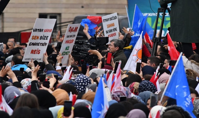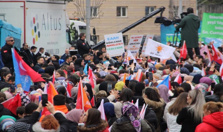 Erdoğan, “Kayseri 14-28 Mayıs seçimlerinde ahde vefasını bir kes daha gösterdi. Bu seçimde Cumhur İttifakı’na verdiğiniz destek için her birinize şükranlarımı sunuyorum. Mayıs seçimleri fırsatını bulduğunda milleti karıştırmayı bekleyen zihniyeti gösterdi. 31 Mart’ta bu zaferi ileriye taşıyarak demokrasimizi sıklaştıracağız. Kayseri her mücadele de yanımızda yer aldı. 2023 hedeflerini birlikte harekete geçirdik. Türkiye Yüzyılı’nın inşasını birlikte geçirmek istiyoruz. Hazır mıyız? Emniyetten rakamları aldım. Karşımızda 75 bin kişi var. Biz bu meydanda yüzbinleri yakaladık. Şimdi yerel yönetim seçimine gidiyoruz. 31 Mart’a 9 günümüz var. 9 günde Kayseri’de durmak yok. 31 Mart akşamı bize balkon konuşmasında gereğini yapmamızı isteyeceksiniz. Kayseri pek çok şehrimize de ilham kaynağı oldu. Türkiye’yi cumhuriyet tarihinin en güçlü siyasi, ekonomik ve sosyal seviyesine çıkardık. Bir yandan altyapı eksikliklerimizi tamamladık, bir yandan milletimizi özgürlük ile buluşturduk. Biz çalıştıkça Rabb’imiz de bereketini verdi. Türkiye’yi 21 yılda 3 kat büyüttük. Amacımız Türkiye’yi 2 kat daha büyüteceğiz. Bunu yapacak azme sahibiz" dedi.