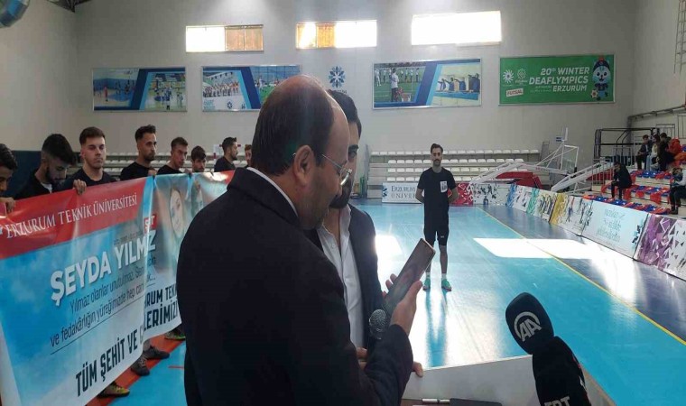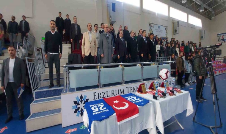 Erzurum Teknik Üniversitesi (ETÜ) Kapalı Spor Salonu’nda 12 takımın katıldığı futsal turnuvasının finali yapıldı. Saygı Duruşu ve İstiklal Marşı’nın okunmasıyla başlayan, şehitler Eren Bülbül ve Şeyda Yılmaz adına düzenlenen futsal turnuvasının finalinden duygu dolu anlar yaşandı. Şampiyonluk maçı öncesinde Şehit Eren Bülbül ve Şeyda Yılmaz’ın annelerine telefonla bağlanıp turnuva için yetkililere teşekkür etti, sporculara başarı diledi. ETÜ Kapalı Spor Salonunda düzenlenen turnuvanın final müsabakasına ETÜ Rektörü Prof. Dr. Bülent Çakmak, Vali Yardımcısı İlyas Öztürk, Türkiye Harp Malulü Gaziler Şehit Dul ve Yetimleri Erzurum Şube Başkanı Recep Akgül, Türkiye Gaziler ve Şehit Aileleri Vakfı Erzurum Şube Başkanı Rıza Demir, Dünya Gençlik ve Spor Konfederasyonu Erzurum İl Başkanı Gürkan Sönmez ve çok sayıda öğrenci katıldı.