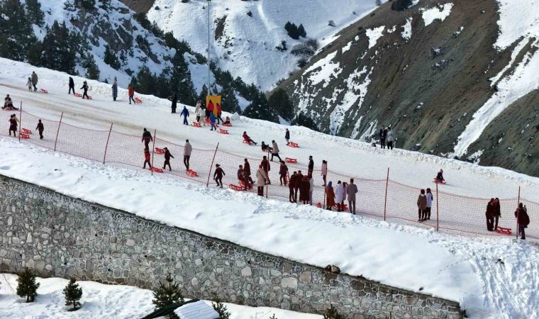 Erzincan’daki Ergan Kayak Merkezi kent ve çevre illerden gelen kayak severlerle adeta dolup taştı.