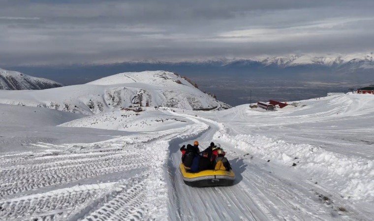 Erzincan’daki Ergan Dağı Kayak Merkezinde kar raftingi renkli görüntüler oluşturdu.