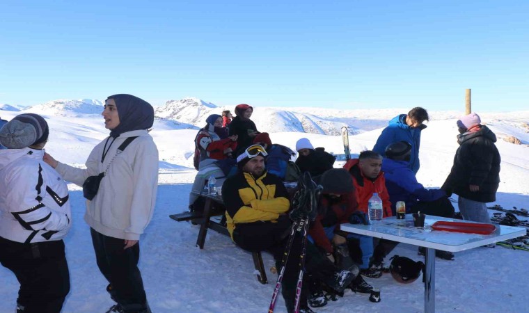 Erzincan’daki Ergan Dağı Kayak Merkezinde hafta sonu yoğunluğu yaşandı. Vatandaşlar göl manzaralı tesislerde çalınan müzik eşliğinde halaylar çekerek, kayak ve manzaranın keyfini çıkardı. Kar raftingi renkli görüntüler oluşturdu.