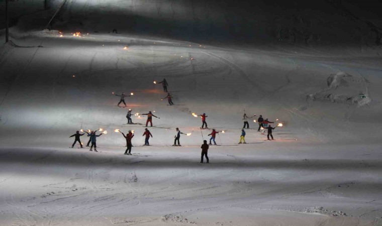 Ergan Kayak Merkezinde 2024 - 2025 kayak sezonu açılışı renkli görüntülere sahne oldu. Kayakçılar pisten aşağı meşaleli kayak yaparak geceyi aydınlatırken havai fişek gösterisi de etkinliğe renk kattı. Kayakçıların gösterisi katılımcılardan tam not aldı.