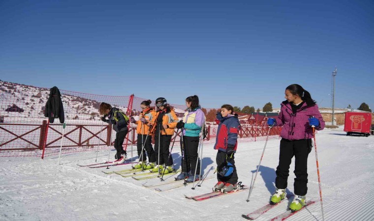 Dağ kayağı antrenörü ve milli sporcu Yeliz Esen öncülüğünde antrenmanlarını gerçekleştiren çocuklar hız, teknik ve taktik becerilerini geliştirmek için önce özel yapım malzemeyle karla kaplı dağda tırmandılar, ardından kayarak indiler.