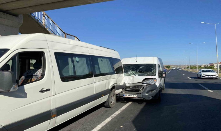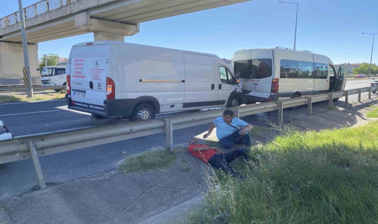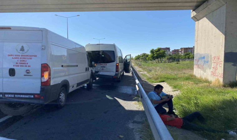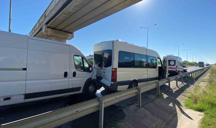 Tekirdağ’ın Ergene ilçesinde sürücüsünün direksiyon hakimiyetini kaybettiği panelvan araç, emniyet şeridinde bekleyen işçi servisine arkadan çarptı. Kazada işçi minibüsü şoförü yaralandı.