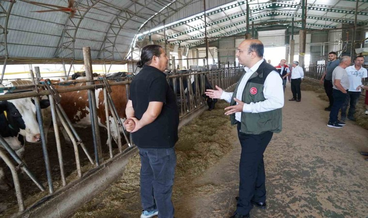 Ergene Kaymakamı Kadir Duman, beraberinde Ergene Belediye Başkanı Müge Yıldız Topak, Tekirdağ İl Tarım ve Orman Müdürü Oktay Öcal, Ergene İlçe Tarım ve Orman Müdürü Mustafa Süleymanoğlu ile Bakırca Mahallesinde faaliyet gösteren Veteriner Hekim Kadir Er’e ait 170 büyükbaş hayvan bulunan aile işletmesini ziyaret ederek Hastalıktan Ari İşletme belgesini takdim etti.