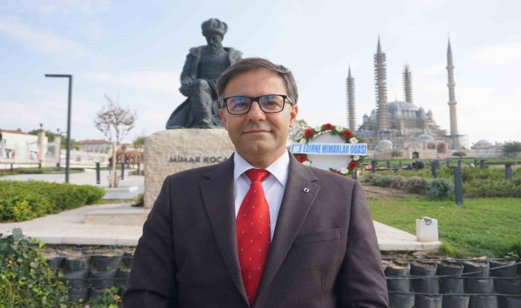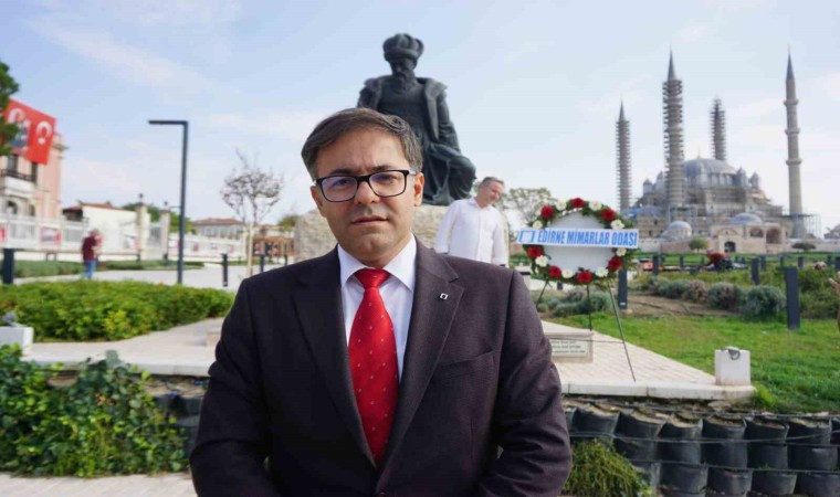 Dünya Mimarlık Günü kutlamaları çerçevesinde Edirne’deki Mimar Sinan Heykeli önünde bir araya gelen TMMOB Mimarlar Odası Edirne Temsilciliği Yönetim Kurulu üyeleri, günün anısına çelenk sunarak basın açıklaması yaptı.