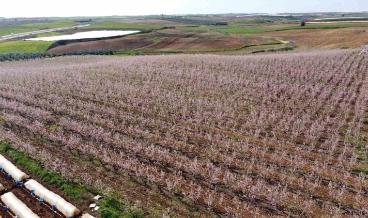 Adana ve ilçelerinde mevsim normallerinin üzerinde seyreden hava sıcakları nedeniyle şeftali ağaçları erken çiçek açınca kartpostallık görüntüler oluştu.
