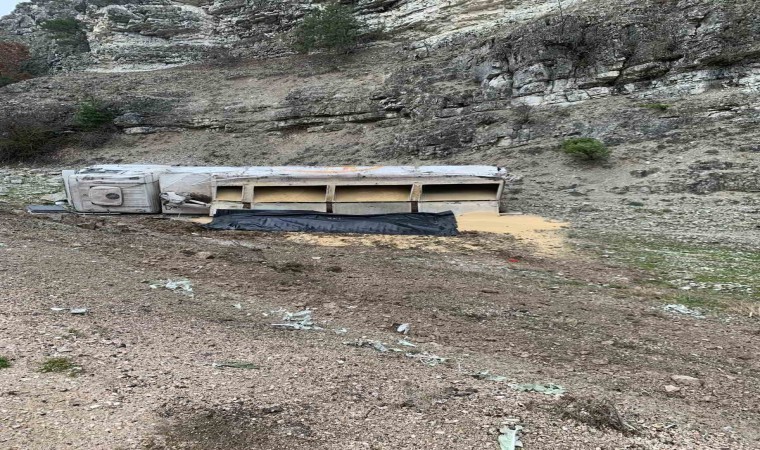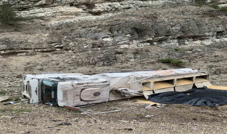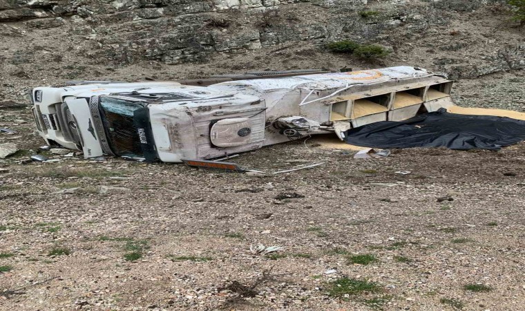 Bolu’da Erpiliç firmasına ait yem yüklü kamyon, virajda kontrolden çıkarak devrildi. Meydana gelen kazada sürücü yaralanırken, dorsede yüklü olan yemler etrafa saçıldı.