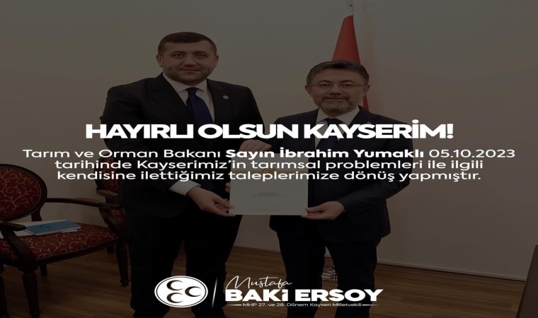 Milliyetçi Hareket Partisi (MHP) Kayseri Milletvekili Baki Ersoy, tarım ile ilgili 3 müjde birden verdi.