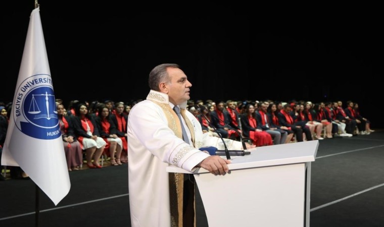Erciyes Kültür Merkezi’nde gerçekleştirilen mezuniyet törenine; Rektör Prof. Dr. Fatih Altun, Kayseri Baro Başkanı Av. Ali Köse, Hukuk Fakültesi Dekanı Prof. Dr. Burak Adıgüzel, Tıp Fakültesi Dekanı Prof. Dr. Cemal Alper Kemaloğlu ile akademisyenler, aileler ve öğrenciler katıldı. Saygı duruşu ve İstiklal Marşının okunmasının ardından törende konuşan Rektör Prof. Dr. Fatih Altun, Erciyes Üniversitesinin Türkiye’nin önde gelen yükseköğretim kurumlarından biri olduğunu belirtti. Rektör Prof. Dr. Altun, “Üniversitemiz birçok alanda etkin çalışmalar yapan ülkesine katkı sağlayan toplumla barışık olarak ilerleyen bir üniversitedir. Erciyes Üniversitesi Türkiyedeki 209 Üniversite arasında Araştırma Üniversitesi olarak yer almış ve bu haklı ünvanını da devam ettiren bir üniversitedir” dedi. Öğrencilere nasihatlerde de bulunan Rektör Prof. Dr. Altun, şunları kaydetti: