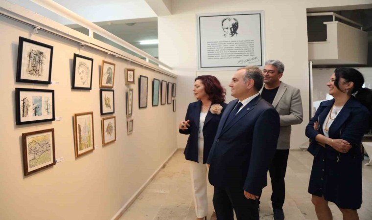Açılışın ardından beraberindekilerle birlikte sergiyi gezen Rektör Prof. Dr. Fatih Altun, öğrenciler tarafından bin bir emekle hazırlanan resimleri ilgiyle inceledi.