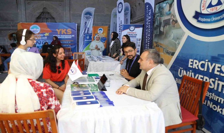 YKS tercih döneminde Hunat Hatun Medresesi’nde aday öğrencilere danışmanlık desteğinde bulunmak ve ERÜ’nün fakülteleri, meslek yüksekokulu ve sosyal imkanları hakkında bilgilerin verildiği stantta öğrencilerin merak ettiği sorular alanında uzman personeller tarafından cevaplanıyor. 25 Temmuz -2 Ağustos tarihleri arasında hizmet verecek Kayseri Büyükşehir Belediyesi Kariyer Merkezi, Erciyes Üniversitesi, Kayseri Üniversitesi ve Nuh Naci Yazgan Üniversitesi’nin stantlarını ziyaret eden ERÜ Rektörü Prof. Dr. Fatih Altun, ERÜ standında da aday öğrenciler ve aileler ile sohbet ederek, Üniversite hakkında ziyaretçilere bilgiler verdi.