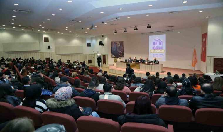 Erciyes Üniversitesi (ERÜ) tarafından düzenlenen ’Rektör-Öğrenci Buluşması’ etkinliği devam ediyor. Rektör Prof. Dr. Fatih Altun, etkinlik çerçevesinde Havacılık ve Uzay Bilimleri Fakültesi, İlahiyat Fakültesi ve İktisadi ve İdari Bilimler Fakültesi öğrencileri ile bir araya geldi.