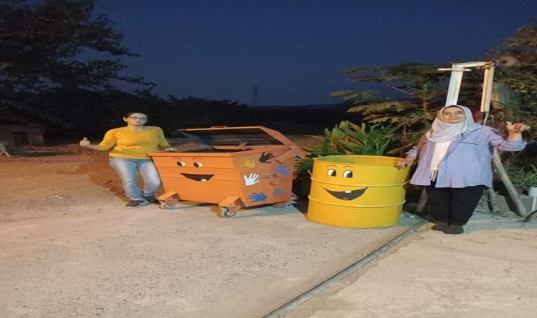 Hatay’ın Erzin ilçesinde yaşayan iki kız kardeş, çöp konteynerlerini boyayıp, üzerlerine şekiller yaptı.