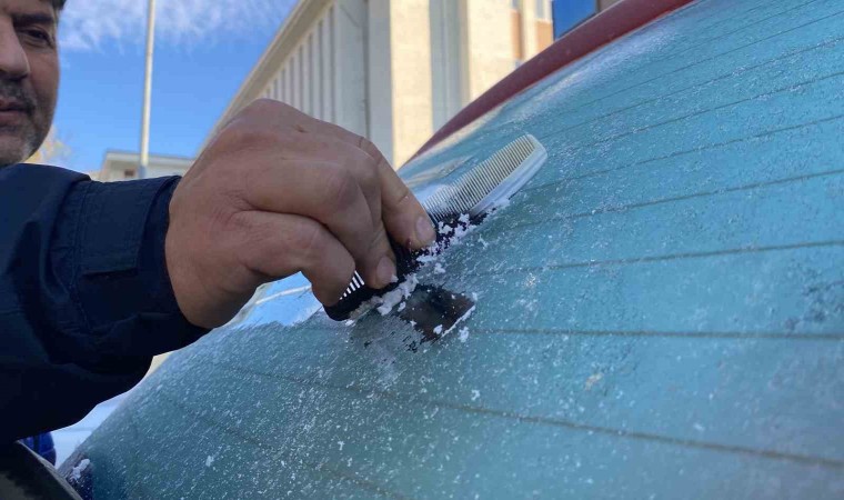 Yüksek kesimlerde kar yağışının ardından etkili olan soğuk hava nedeniyle Erzincan kent merkezinde sabah saatlerinde araçların camları buz tuttu.