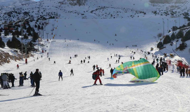 Yerli ve yabancı yamaç paraşütü sporcuları Ergan Dağı Kayak Merkezi’nde yamaç paraşütleri ile hem uçtular hem de kayak yaptılar. Adrenalin dolu anları izleyenler keyifli anlar yaşadı.
