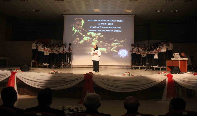 Programda ilk olarak konuşma yapan İl Milli Eğitim Müdürü Hacı Ömer Kartal, “Tüm dünyanın, hatta hayatı boyunca mücadele ettiği düşmanların bile kabul ettiği Gazi Mustafa Kemal Atatürk’ün bugün aramızdan ayrılışının 85. yılı. O, kısacık hayatında dünya tarihinde benzeri görülmemiş izler bıraktı. Atatürk ileriyi gören bir liderdi. Bize düşen onun fikirlerine kulak vermek, anlamaya çalışmak ortak değerimizi gençliğe iyi tanıtmaktır. Atatürk idealist bir liderdi. Hür ve bağımsız bir ülke idealini gerçekleştirdikten sonra Türkiye Cumhuriyeti’ni ileri müreffeh ülkeler idealine yükseltmiştir. Ve hayatı boyunca bunun için mücadele vermiştir. Atatürk, toplumun her kesmini kucaklayan bir halk adamıydı. Onun, “Benim için en büyük makam ve ödül, Türk milletinin bir ferdi olarak yaşamaktır” sözüde de bunu kanıtlar. O, eğitim bilim, fen, sanat, spor ve kültüre çok önem vermiştir. “En büyük emelim, milli irfanı yükseltmektir” sözünü söyleyen Atatürk, milli eğitim hedefleriyle yetiştirilecek gençliğin önemini vurgulamıştır. O, hep milletine güvendi, inandı ve onlarla gurur duydu. Kurtuluş savaşı’nın ardından söylediği “En büyük davamız en medeni ve müreffeh bir millet olarak varlığımızı yükseltmektir” sözü bunu ispatlamaktadır. Ömrünü Türk milletine adayan büyük kahramanın çabasına mukabil, bizlere düşen görev, yüzümüzü geleceğe dönmek, ufkumuzu geniş, hedeflerimizi büyük tutmaktır.