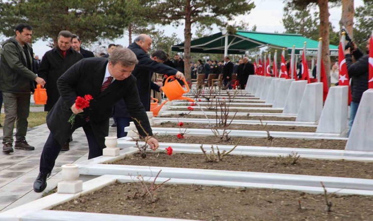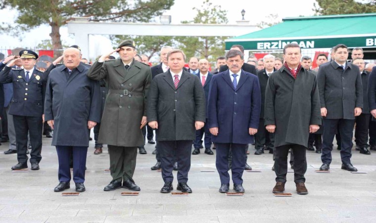 İlk olarak Garnizon Şehitliğinde başlayan törende Erzincan Valiliği, 3. Ordu Komutanlığı, Erzincan Belediyesi ve Erzincan Şehit Aileleri Derneği çelenklerinin sunumunun ardından saygı duruşunda bulunularak, İstiklal Marşı okundu ve saygı atışı yapıldı. Şehitler için Kur’an-ı Kerim okunarak dualar edilmesinin ardından Erzincan Valisi Hamza Aydoğdu, Şehitlik Şeref Defterini imzalayarak bir konuşma yaptı.