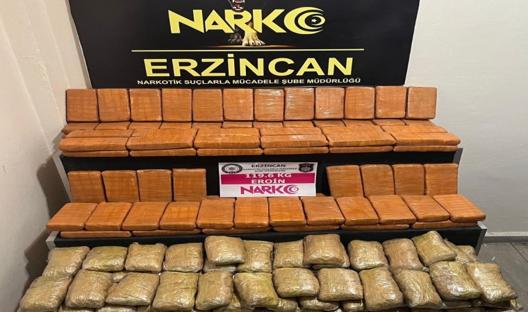 Erzincan Emniyet Müdürlüğü ekiplerince Erzurum-Erzincan kara yolunda durdurulan kamyonda "Naz" isimli narkotik madde arama köpeğiyle yapılan aramada, koltukların içine gizlenmiş şekilde piyasa değeri yaklaşık 200 milyon TL olan 119 kilo 600 gram eroin ele geçirildi.