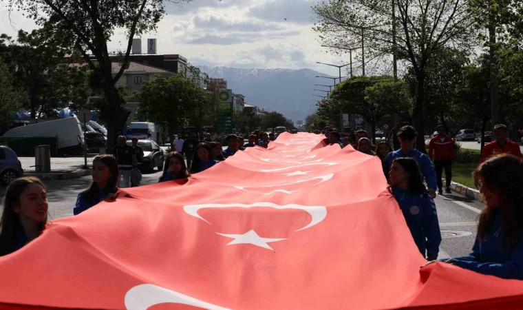Mustafa Kemal Atatürk’ün Samsun’a çıkışının 105’inci yıl dönümünde Atatürk’ü Anma, Gençlik ve Spor Bayramı etkinlikleri kapsamında Erzincan’da 500 metre uzunluğundaki Türk bayrağıyla ‘Gençlik Yürüyüşü’ yapıldı.