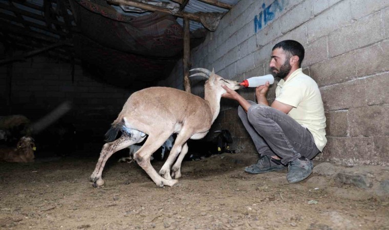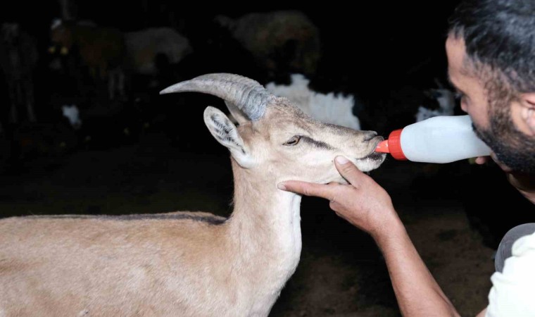 Erzincan’da bir dere içerisinde yaralı ve bitkin halde bulunan koruma altındaki yavru yaban keçisini kendi keçi sürülerinin içerisine katan besiciler önce tedavi etti sonra da yaralı yaban keçisini elleriyle besledi.
