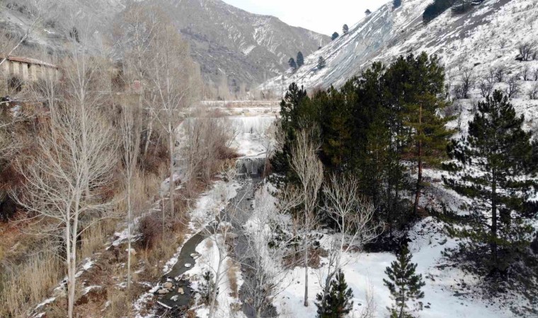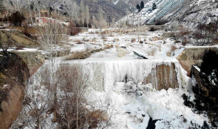 Soğuk havanın etkili olduğu Erzincan’da dereler buz tuttu.