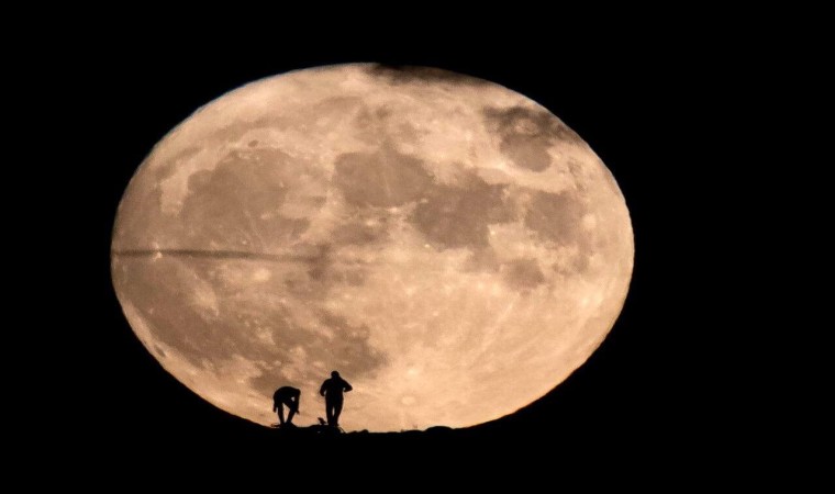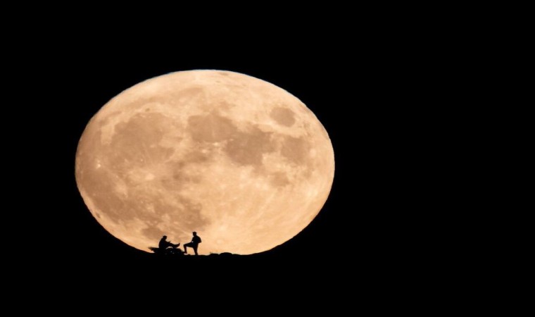 Havada net bir şekilde görüntülenen dolunay görsel şölen oluşturdu.