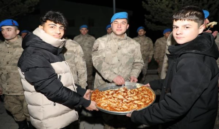 Vali Aydoğdu ile birlikte güvenlik güçlerini yeni yıllarını kutlayan gençler, Erzincan’ın meşhur kesme kadayıf tatlısı da dahil olmak üzere yöresel lezzetleri ikram etti.