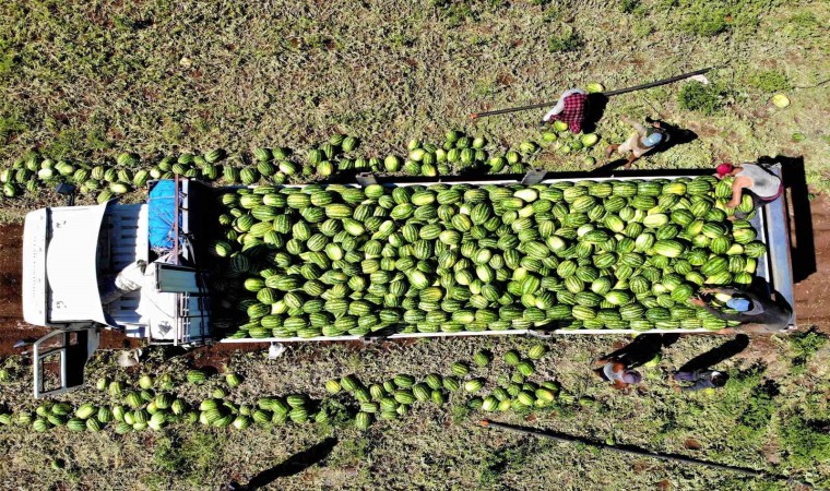 Erzincan’ın bereketli topraklarında üretilen kavun ve karpuzun hasadı başladı. Erzincan’da mayıs ayında toprakla buluşan karpuz fidelerinin verdiği karpuzların hasadı başladı. Doğu Anadolu Bölgesinin sebze ambarı konumunda bulunan Erzincan’da ekilen karpuzlar hasat edilmeye başlandı. Hasadın Eylül ayı sonuna kadar süreceği belirtilirken, Erzincan’da da yıllık karpuz üretimi ortalama 18 bin ton olarak gerçekleşiyor. Üretici şu anda karpuzu kilogramı 5,5 ile 6 liradan tarladan satışını gerçekleştiriyor. Bir karpuzun ortalama ağırlığı 5-15 kilogram arasında değişiyor. Yetiştirilen karpuzlar, başta Erzincan’daki marketler olmak üzere bölge illerine de satış için gönderiliyor.