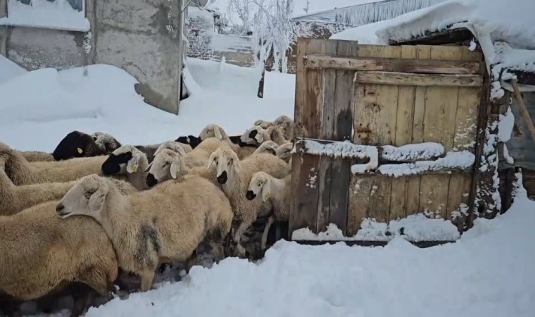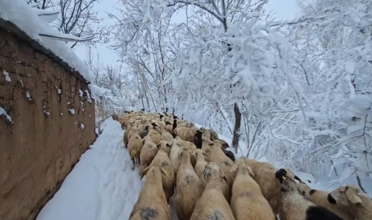 Erzincan’da besiciler, karla kaplı köylerde kışın tüm zorluklarına rağmen küçükbaş hayvanlarının bakımını ihmal etmiyor.