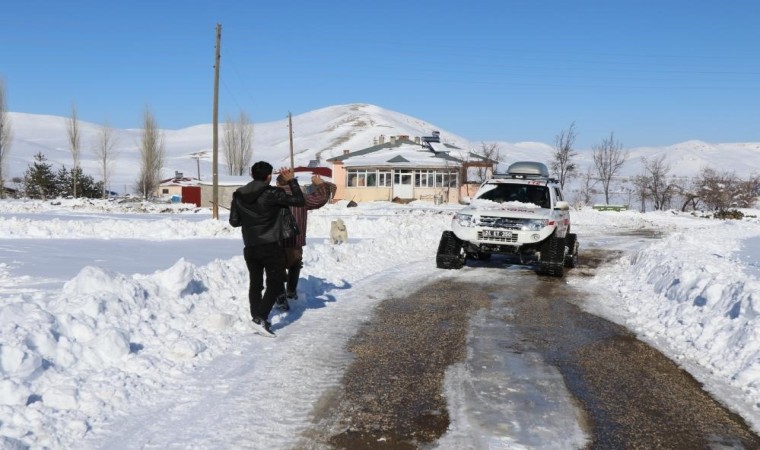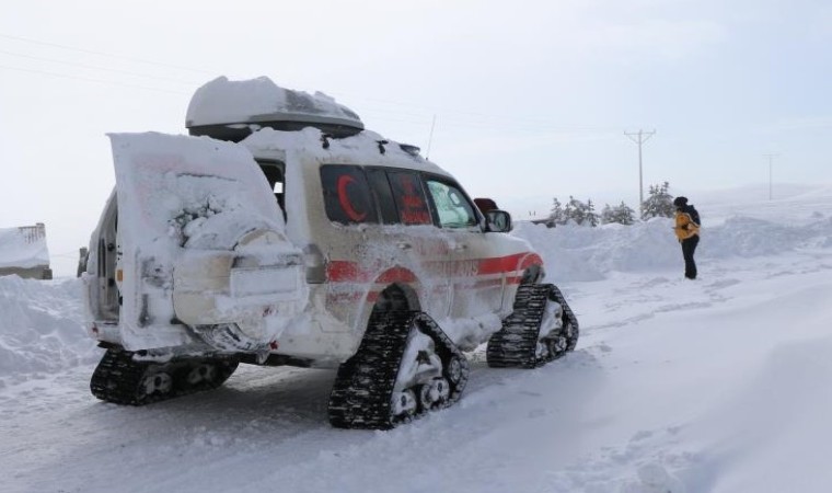 112 Acil Sağlık ekipleri, Erzincan’da kar, tipi ve dondurucu soğuklara rağmen paletli ambulanslarla kırsalda yaşayan vatandaşlara ulaşıyor.