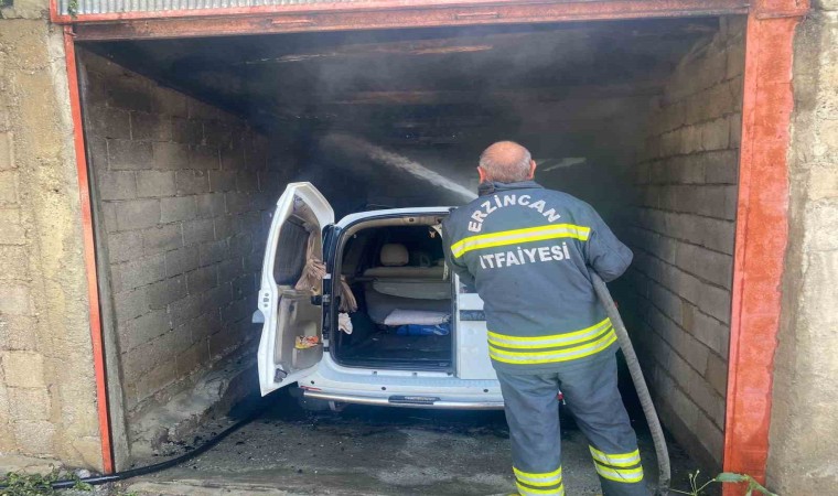 Erzincan’da park halindeki otomobil yanarak kullanılamaz hale geldi.