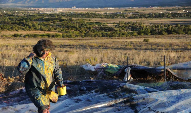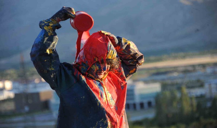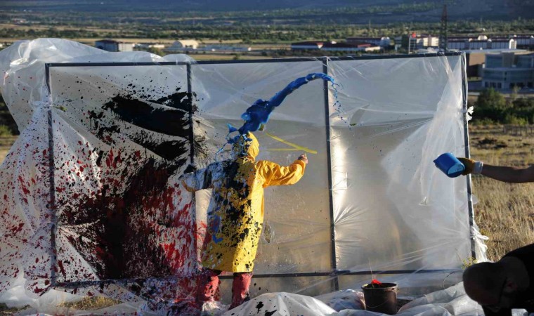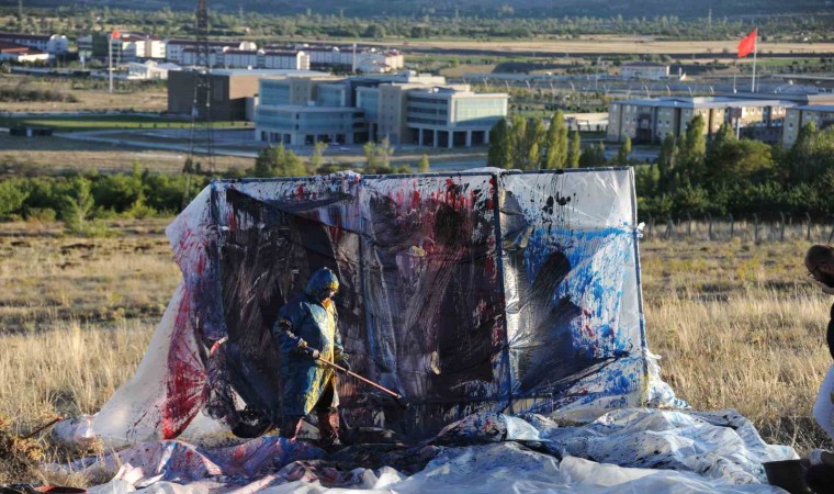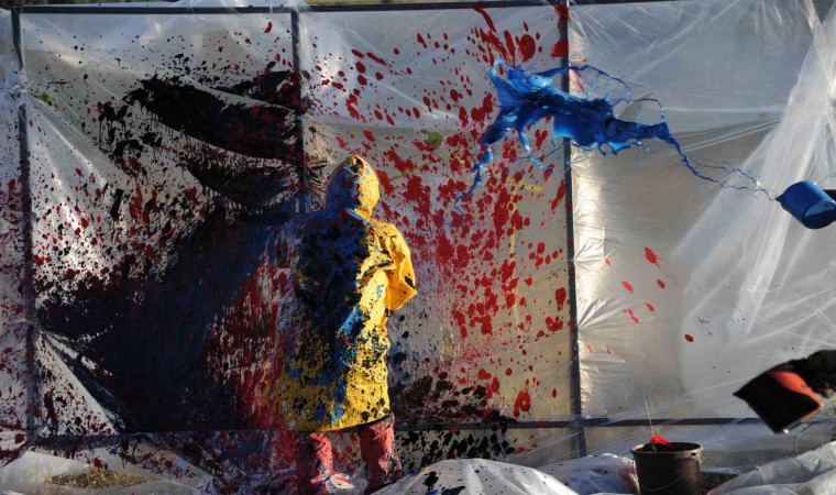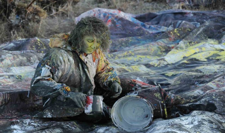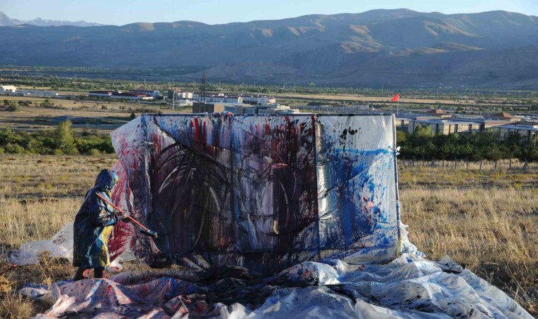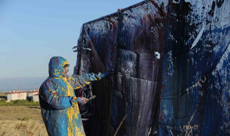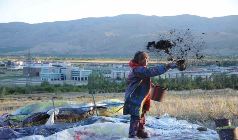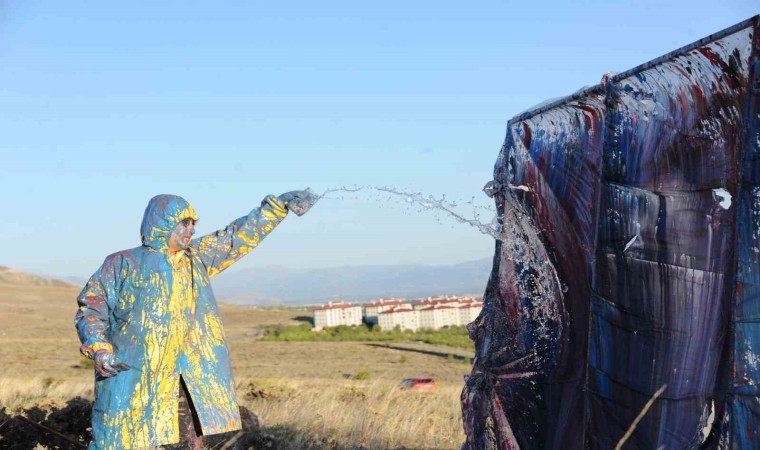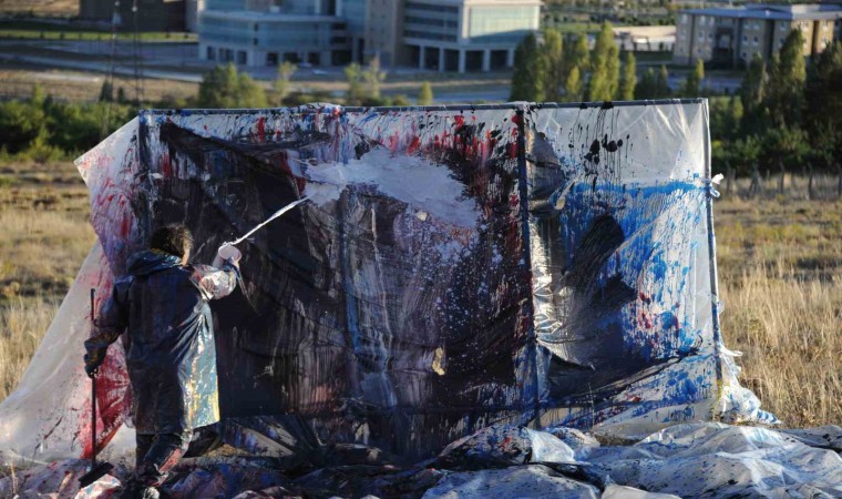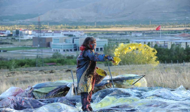 Erzincan Binali Yıldırım Üniversitesi Güzel Sanatlar Fakültesi Dekanı Prof. Dr. Mehmet Kavukcu, naylon ve plastik boyaları kullanarak insanın doğayla giriştiği mücadeleyi yansıttığı sıra dışı performanslarına bir yenisini daha ekledi.