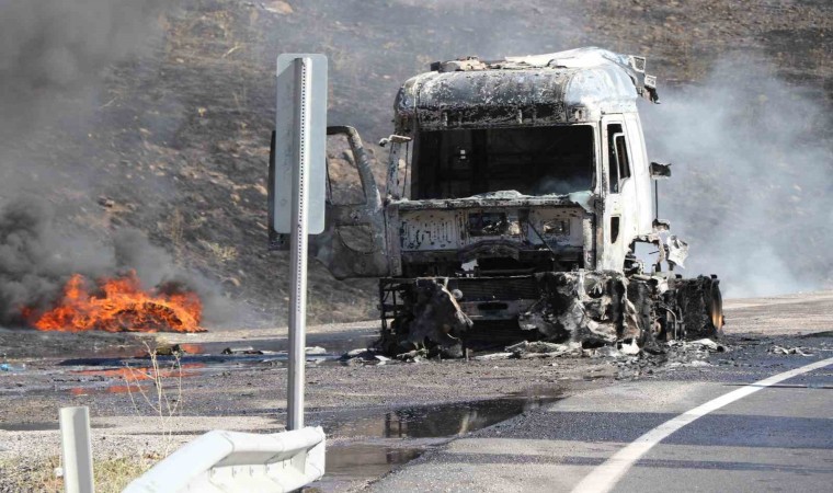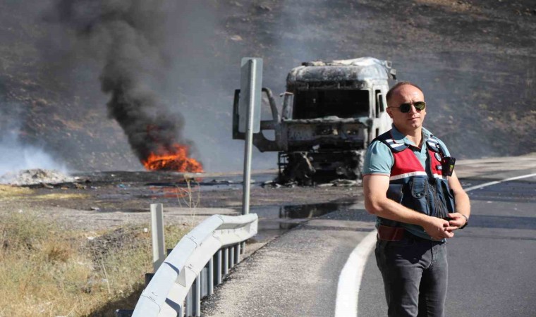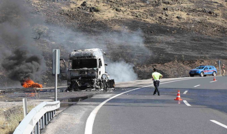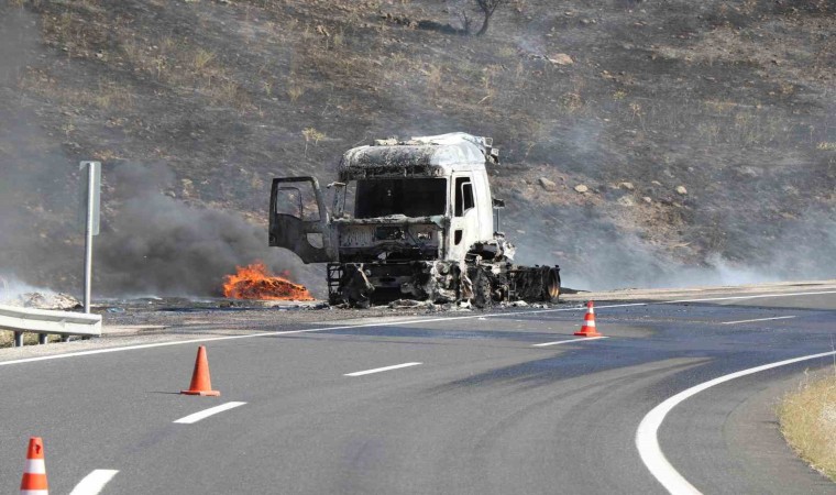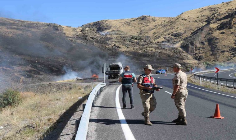 Erzincan-Erzurum kara yolunda seyir halindeki tır alevlere teslim oldu. Yanan tırın sürücüsü alevlerden son anda kurtuldu.