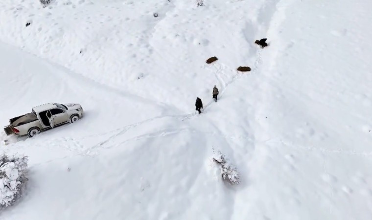 Erzincan’da yoğun kar yağışıyla birlikte dağlarda kar kalınlığı 60 santimetreye ulaşırken yiyecek bulmakta güçlük çeken yaban hayvanlar için doğaya yem bırakıldı.
