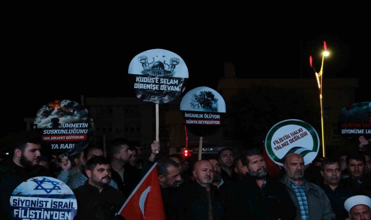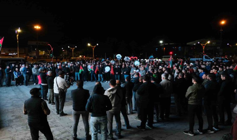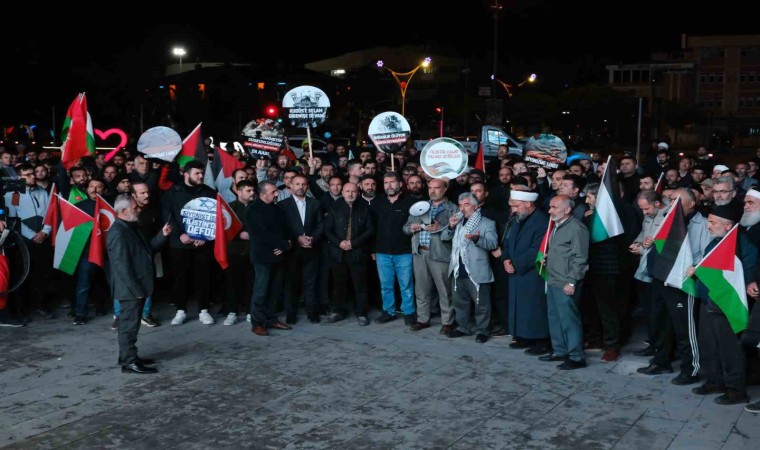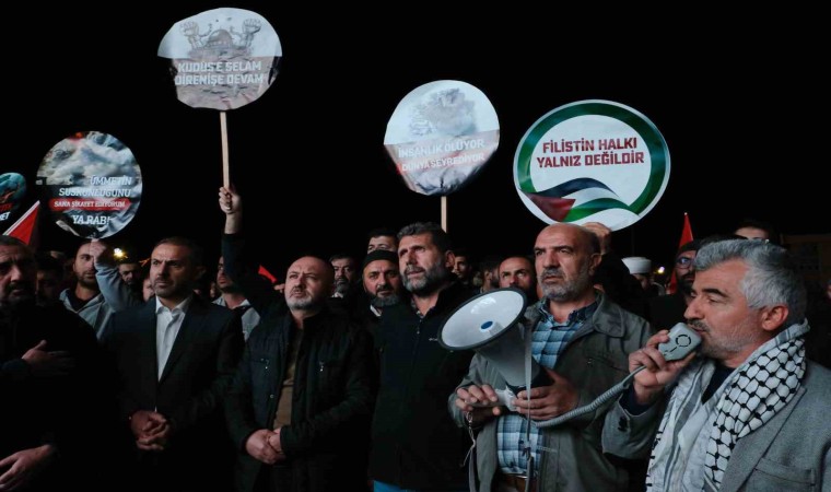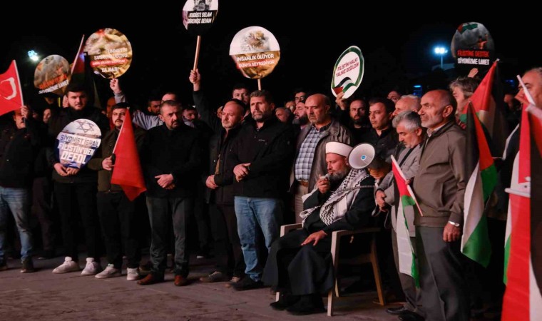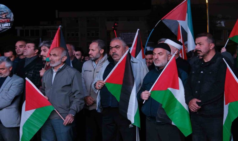 Gazze’deki El-Ehli Baptist Hastanesi’ne düzenlenen saldırının ardından Erzincan’da meydana çıkan vatandaşlar İsrail’e tepki gösterirken Filistin için dualar etti.