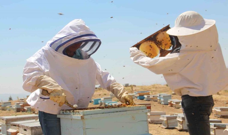 Erzincan’da, kavurucu sıcak altında giydikleri özel kıyafetler ve taktıkları maskelerle bal hasadı yapan arıcılar verimli bir yıl geçirmenin sevincini yaşıyor.