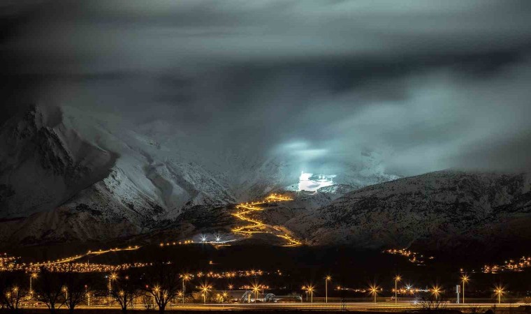 Erzincan’da kayak severler, ramazanın kayak sezonuna denk gelmesi nedeniyle iftardan sonraki zamanlarını aydınlatılmış pistlerde geçiriyor.