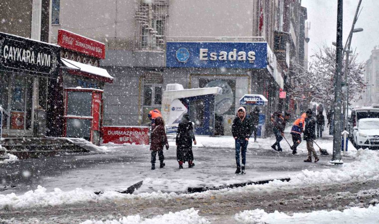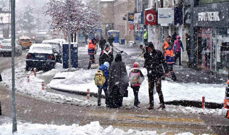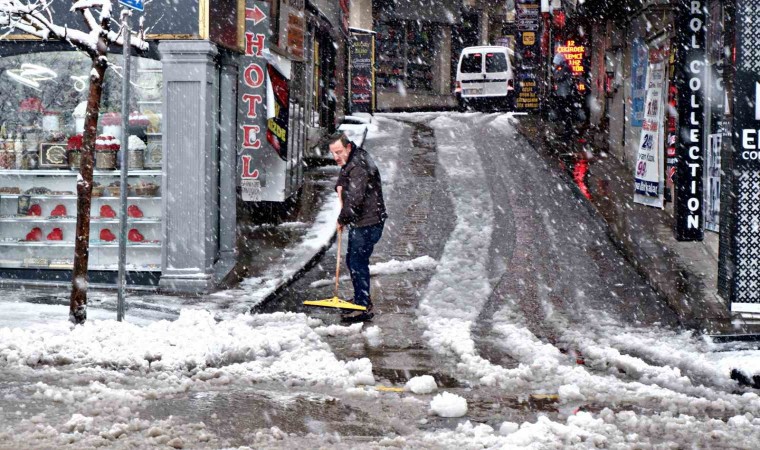 Erzurum’da dün gece yağmur ve fırtına ile başlayan yağış gece saatlerinde yüksek kesimlerden sonra şehir merkezinde de kara dönüştü. Sabah evlerinden çıkan Erzurumlular beyaz örtü ile karşılaştı. Özellikle araçlarıyla iş yerlerine gitmek isteyen vatandaşların biriken karları temizlemekte zaman zaman zorlandıkları görüldü. Belediye ekipleri ana caddeler başta olmak üzere karla mücadele ediyor.