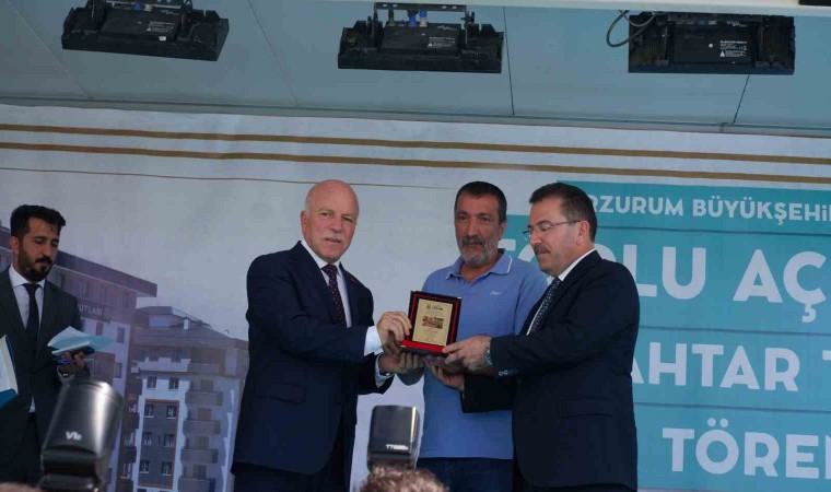 Erzurum Büyükşehir Belediyesi tarafından yapımı bitirilen konutların anahtar teslim töreni yapıldı.